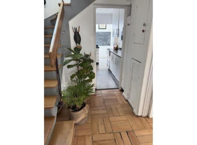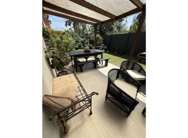 En el primer piso se encuentra el hall de entrada con baño de visitas, living y comedor separados, cocina con un amplio espacio para comedor de diario, dormitorio de servicio, logia y una gran terraza con jardín.