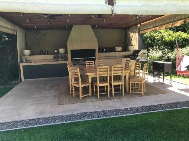 En otro sector del Bungalow hay una gran sala de estar con terraza y quincho independiente. Son 5 dormitorios en suite, cada uno con su walk in closet.Dormitorio principal con terraza independiente hacia el jardín, con precioso baño, mas 2 walk in closet.