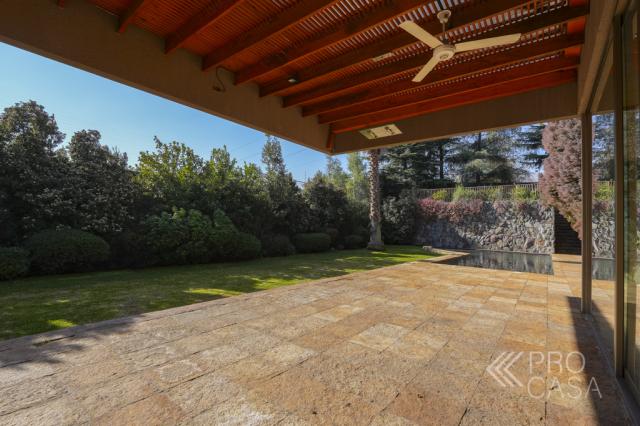 | N° de Pisos: 2 | Condominio: SI | Gastos Comunes Aprox.: 900000 | Seguridad: Guardias | Piscina: Si | Jardin: Si | Lavadero: Lavandería | Sala de Estar: Si | Living Comedor (Juntos): No | Dormitorio en Suite: Si | Walk in Closet: Si | Tipo de Estacionamiento: Superficie Techado | Orientación: Nor Oriente | Tipo de Construcción: Mediterraneo |