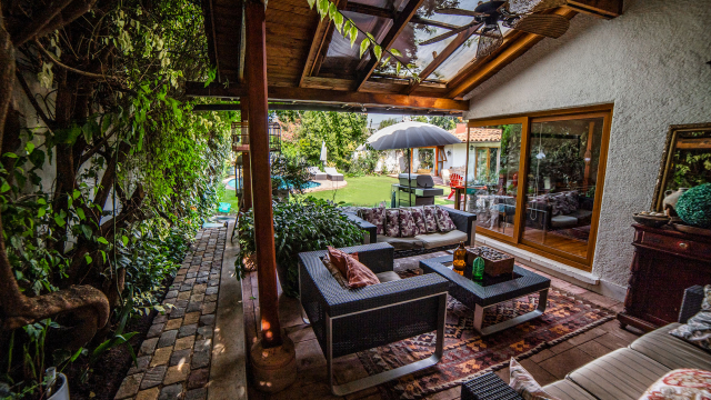 procasa.cl Colegio Mayflower // Camino Gino Girardi // El Huinganal maravillosa ubicación, cercana a Colegios, Jardines Infantiles, al Mall de la Dehesa, Portal La Dehesa, supermercados, restoranes, farmacias, con muy buenos accesos por El Rodeo y El Huinganal. La casa es de estilo chilena, es preciosa y luminosa, esta distribuida en tres dormitorios, tres baños, dos salas de Estar, amplio estudio o escritorio de 25 mt2, dormitorio de servicio, taller exterior que puede ser bodega, patio techado, estacionamiento para 5 autos, piscina y jardín formado. Contribuciones $ 350.000. aproximadamente.