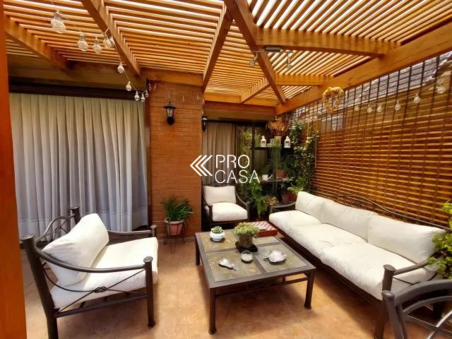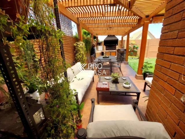 Jardín con piscina e increíble terraza con quincho. Alarma. Toda la casa tiene persianas y calefacción por losa radiante. Estacionamiento para 3 autos / Bodega bajo la escalera.