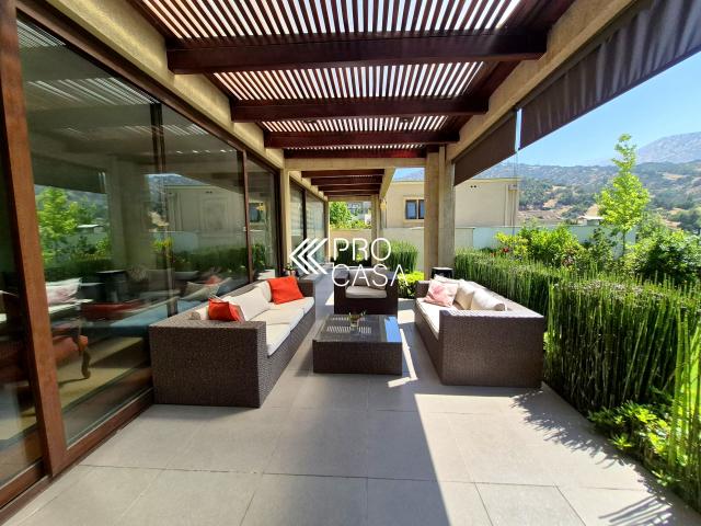 | N° de Pisos: 2 | Condominio: SI | Gastos Comunes Aprox.: 250000 | Seguridad: Guardias | Piscina: Si | Jardin: Si | Lavadero: Loggia | Sala de Estar: Si | Living Comedor (Juntos): Si | Dormitorio en Suite: Si | Walk in Closet: Si | Tipo de Calefacción: Calefaccion Central | Tipo de Estacionamiento: Superficie | Orientación: Nor Oriente | Tipo de Construcción: Mediterraneo |