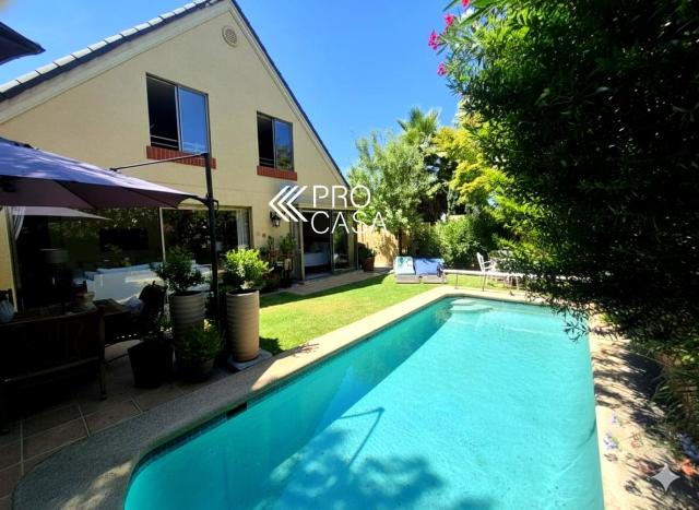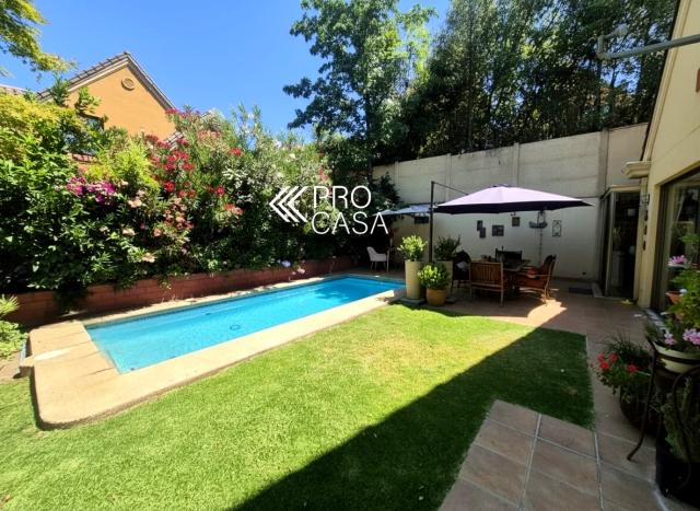| N° de Pisos: 2 | Condominio: NO | Gastos Comunes Aprox.: 0 | Seguridad: No Tiene | Piscina: Si | Jardin: Si | Lavadero: Interior | Sala de Estar: Si | Living Comedor (Juntos): Si | Dormitorio en Suite: Si | Walk in Closet: Si | Tipo de Calefacción: Losa Radiante | Tipo de Estacionamiento: Superficie | Orientación: Oriente Poniente | Tipo de Construcción: Clasico |