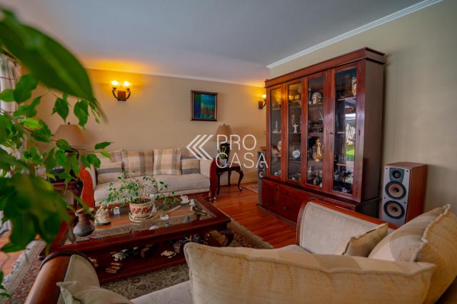 | N° de Pisos: 2 | Condominio: NO | Gastos Comunes Aprox.: 0 | Seguridad: Guardias | Piscina: Si | Jardin: Si | Lavadero: Lavandería | Sala de Estar: Si | Living Comedor (Juntos): Si | Dormitorio en Suite: Si | Walk in Closet: Si | Tipo de Calefacción: Losa Radiante | Tipo de Estacionamiento: Superficie | Orientación: Oriente Poniente | Tipo de Construcción: Colonial |