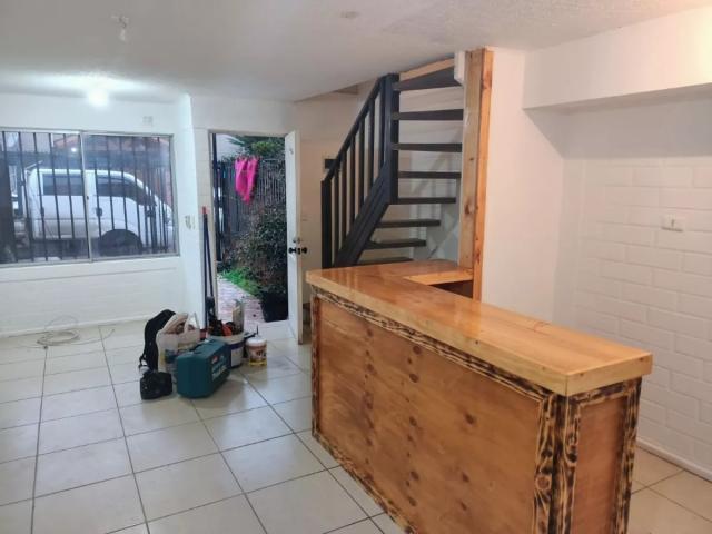 - Primer piso living-comedor, cocina americana, patio trasero con gran ventanal, patio delantero con jardín y estacionamiento con portón de corredera.