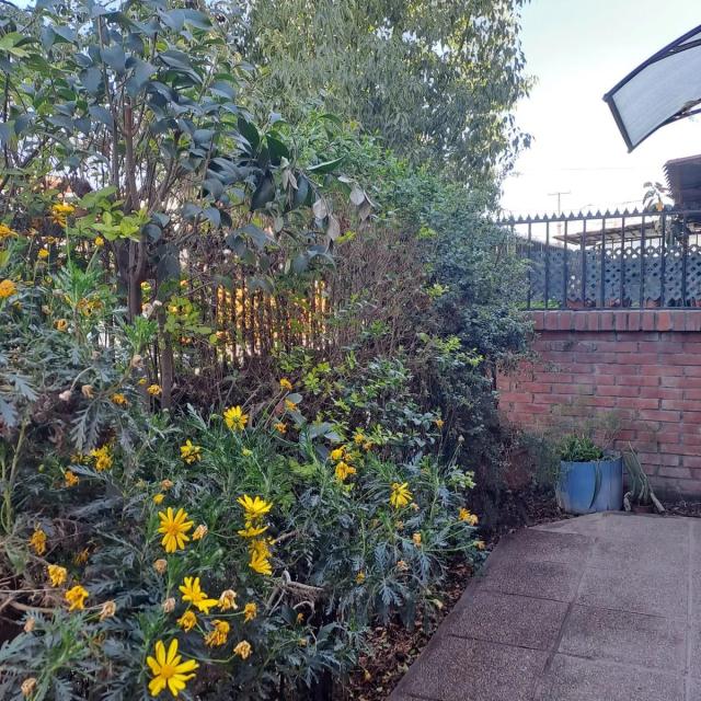 Casa pareada de a dos con ante jardín y patio. Se puede habilitar la entrada de auto y estacionamiento. Excelente oportunidad.