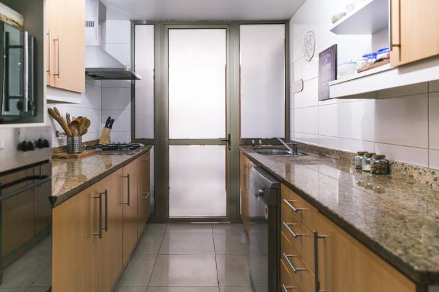 ESTUPENDO DEPARTAMENTO en sector El Golf, muy bien ubicado y a pasos del metro, plazas y servicios, es calle tranquila, residencial, conserjería y cámaras 24hrs. DEPARTAMENTO amplio hall y recibos juntos, gran terraza cerrada con termopaneles, amplia cocina equipada con horno empotrado, lavavajillas, refrigerador (si es necesario), lavadora y secadora, despensa, cubiertas de granito, campana. DORMITORIOS 4 en total, los 3 primeros dormitorios tienen salida a la terraza y permiten camas de dos plazas, el principal está en suite, varios closets, baño con luz natural y amplio espacio con tina, cuarto dormitorio es más pequeño y hay un baño completo en la loggia, segundo baño con tina. ESTACIONAMIENTOS 2 unidades separadas y gran bodega de 8 metros aprox. EDIFICIO con seguridad, estacionamientos de visitas, piscina, juego niños, jardines, salón de eventos, oficina. Código interno Procasa: 68503