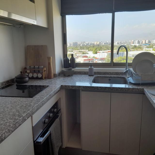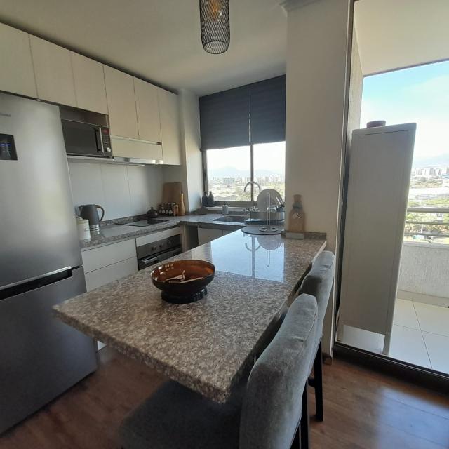:. PROCASA Propiedades (Código Interno 69052).: ARRIENDA lindo departamento en Laguna Centro comuna de Macul, Edificio Esmeralda. Otro concepto de vivir junto a una laguna artificial navegable Crystal Lagoons y piscina con arena de uso todo el año. Distracción y relajo sin salir del condominio. Este departamento de 1 dormitorio y 1 baño, cocina con cubierta de granito, equipada con horno, campana y encimera vitrocerámica de 2 platos, baño con espacio para lavadora, living con salida a terraza cuadrada ubicada en una esquina del edificio, con vista totalmente despejada hacia el nororiente. Vista panorámica desde un piso 11. Conectividad: Ubicación privilegiada a una cuadra de metro estación Carlos Valdovinos a 4 minutos caminando, conexión directa a Vicuña Mackenna. Seguridad: Dos barreras de entrada con acceso controlado. Áreas comunes: Estacionamientos de visitas, bicicleteros, quinchos, juegos infantiles, salones multiusos, senderos con jardines y áreas verdes.Venga a visitar para imaginar cómo es vivir en un departamento moderno y entretenido! Agende su visita. Código interno Procasa: 69052