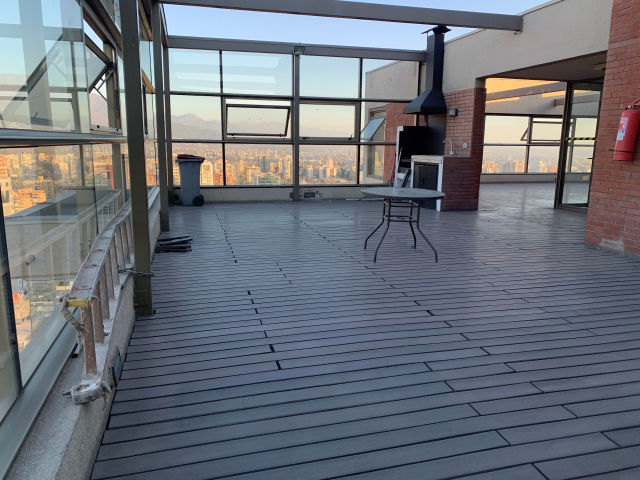 | Metros Cuadrados de Terraza: 12 | Orientacion: Oriente | Edad: 12 años | N° de Piso del Depto: 14 | N° de Pisos del Edificio: 26 | N° de Ascensores: 4 | Lavadero: Lavadero Interior | Calefacción: No Existe Atributo | Piscina: Rectangular | Quincho: SI | Gimnasio: SI | Sala Multiuso: SI | Tipo de Estacionamiento: Subterraneo | Bodega: 0 | Gastos Comunes Aprox.: $100.000 |