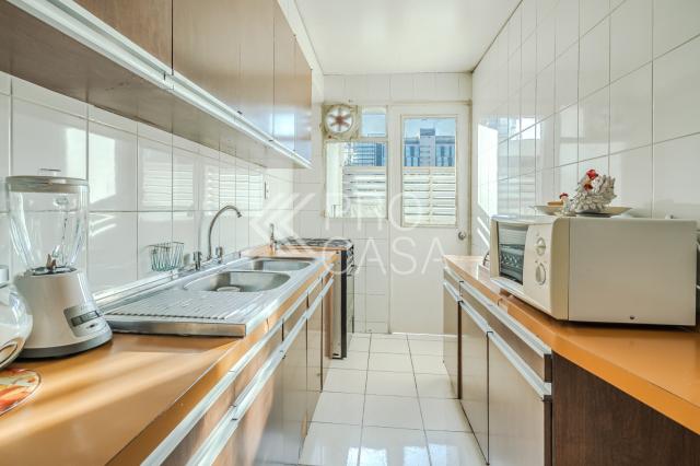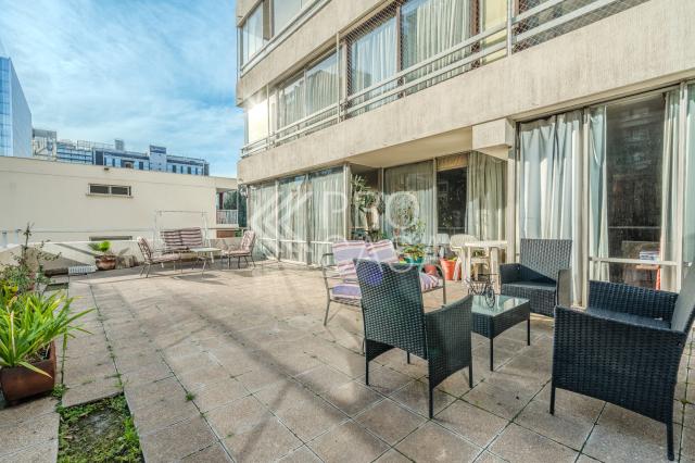 El Dpto. de 108 m2 útiles, se accede a un pequeño hall de distribución y tiene el living y comedor juntos, que salen a una amplia y luminosa terraza de 62 m2. Posee tres dormitorios. Uno es el de servicio que puede ser tercer dormitorio. Dos baños completos. Tiene una cómoda cocina, muy ventilada, con logia. La venta incluye un estacionamiento en el primer piso y una bodega en el entrepiso del edificio.