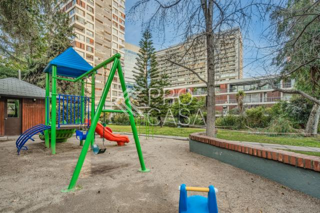 Accesos controlados 24/7 con estricto protocolo de seguridad. El edificio cuenta con cuidados y extensos jardines y gran variedad de interesantes prestaciones para los residentes, tales como: Quincho, piscina, Juegos infantiles, Salón de Eventos. Gran oferta comercial a distancia caminable como el Supermercado Unimarc, Centro Comercial APUMANQUE, variado transporte público muy cerca y fácil conexión con la principales autopista urbanas del sector oriente de Santiago.