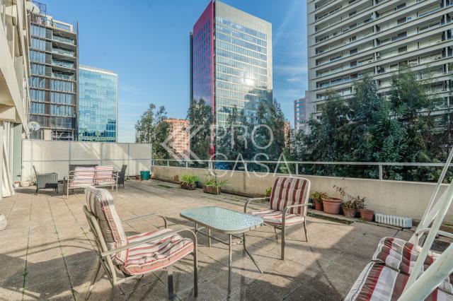 ProCasa La Dehesa (Oficina Carloshurtado Propiedades) VENDE Magnífico DEPARTAMENTO, ubicado en la prestigiosa Avenida Manquehue Norte, en el centro del Barrio Residencial de la Comuna de Las Condes. Excelente conectividad, con variado transporte público a poca distancia y muy cerca de la Estación de Metro APUMANQUE.