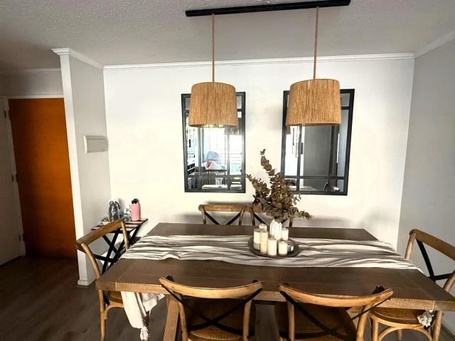 | Metros Cuadrados de Terraza: 5 | Orientacion: Sur Oriente | Edad: 17 años | N° de Piso del Depto: 10 | N° de Pisos del Edificio: 13 | N° de Ascensores: 2 | Lavadero: Loggia | Calefacción: Calefaccion Central | Piscina: No Existe Atributo | Quincho: NO | Gimnasio: NO | Sala Multiuso: SI | Tipo de Estacionamiento: Subterraneo | Bodega: 1 | Gastos Comunes Aprox.: $180000 |