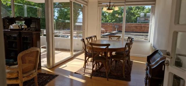 Áreas Sociales: Living y comedor independientes, separados por una elegante puerta de cristal. Salida a terraza con vista despejada.