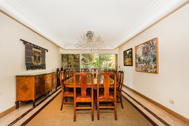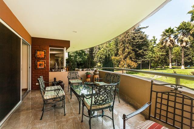 PARQUE PRIVADO EN EL MEJOR BARRIO DE LAS CONDES, ubicado en San Damián, con toda la privacidad y tranquilidad del condominio, acceso controlado y sistema de seguridad, son 3 edificios en medio de los jardines con una piscina y paisajismo. DEPARTAMENTO ubicado en primer piso elevado con acceso propio y salida a jardines, amplio hall de entrada con mármol italiano, amplios recibos con terraza grande, gran comedor con terraza, cocina grande, loggia y servicios. PRIMER PISO se encuentra un escritorio, luego la suite tiene un espacio separado para estar o escritorio, dormitorio grande con terraza, sala de baño con jacuzzi, dos walking closets, baño de visitas, 2 dormitorios grandes, 2 baños completos, principal en suite. SUBTERRANEO que es como el primer piso tiene una sala de estar y dos dormitorios grandes con baño completo, que se accede por una escalera. 2 estacionamientos y una bodega grande. Código interno Procasa: 68927