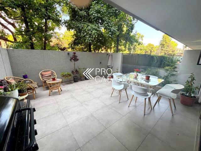 Exclusivo y luminoso departamento con jardín y terraza en La Dehesa Central. A pasos de Portal La Dehesa, centros comerciales, restaurantes gourmet y exclusivos colegios.