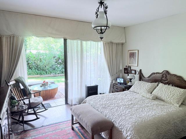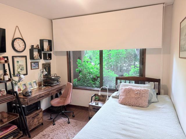 EXCELENTE OPORTUNIDAD DE COMPRA!! Estupendo departamento ubicado en barrio central de La Dehesa, muy bien ubicado, dentro de un condominio privilegiado y elegante con un parque, espacios amplios de caminatas, jardines y piscina privados, control de acceso y estacionamientos para visitas. DEPARTAMENTO en primer piso con jardín propio formado y cuidado por el condominio, con árboles y pasto, muy agradable entorno. ACCESO por el departamento con un buen hall de entrada y recibos grandes con salida al jardín, buena terraza, asadera, amplios jardines, baño de visitas, gran cocina full equipada y comedor de diario, salida a loggia y patio techado. Dormitorios son 4, 2 baños, el principal está en suite con salida al jardín, walking closet. El departamento tiene 2 estacionamientos y una bodega grande, los gastos comunes son muy económicos de $ 365.000.- VISITE ESTE DEPARTAMENTO!! Código interno Procasa: 68986