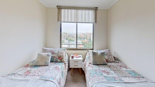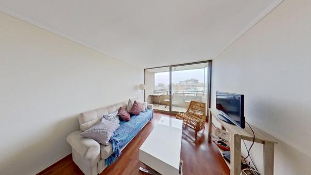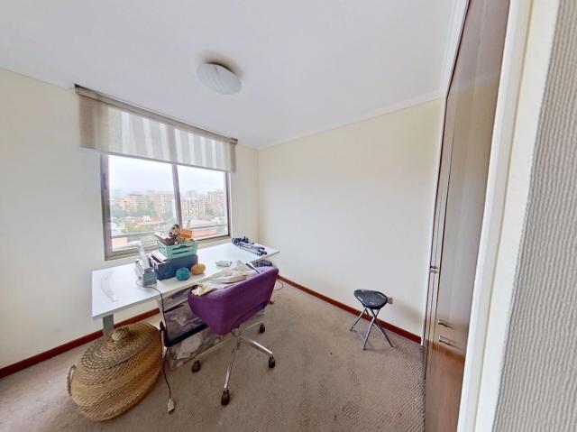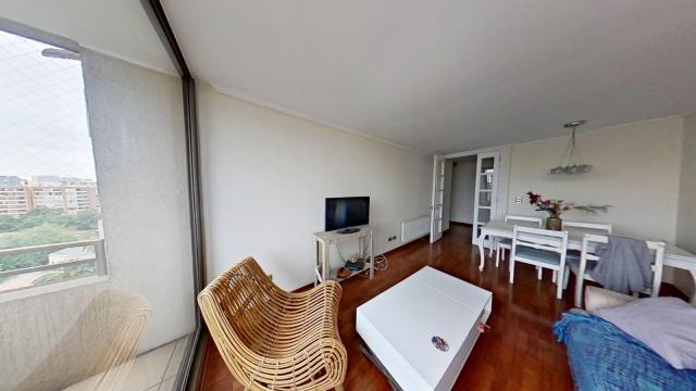 El departamento esta distribuido en tres dormitorios, dos baños, cuenta con vista despeja, incluye estacionamiento y bodega.