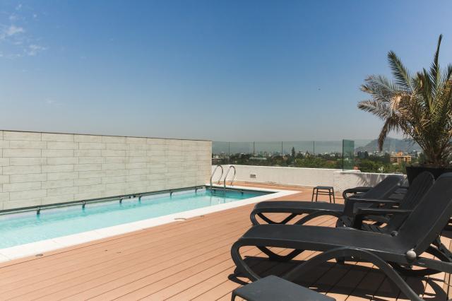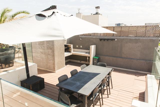 | Metros Cuadrados de Terraza: 20 | Orientacion: Nor Poniente | Edad: 7 años | N° de Piso del Depto: 5 | N° de Pisos del Edificio: 6 | N° de Ascensores: 2 | Calefacción: Mural Gas Cañeria | Piscina: Rectangular | Quincho: SI | Gimnasio: SI | Sala Multiuso: NO | Tipo de Estacionamiento: Subterraneo | Bodega: 1 | Gastos Comunes Aprox.: $120000 |