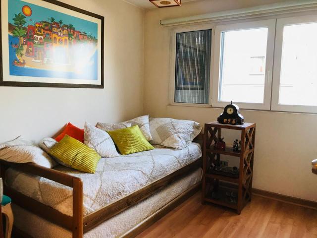 Acogedor departamento, muy bien distribuido, living comedor con piso flotante y salida a gran terraza, cocina con encimera, horno empotrado, campana, varios muebles para guardar y loggia, 3 dormitorios con piso flotante y dos baños. estacionamientos, Gastos comunes $150.000 aprox.