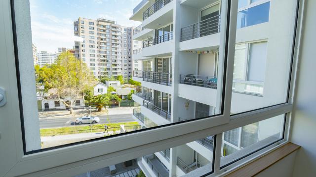 Ecelente departamento , en barrio muy tranquilo pero cerca de farmacias, colegios, supermercados, con con 2D2B uno en suite con walking closets, conexion para lavadora, cocina muy completa americana con artefactos de calidad, todas las ventanas son termopanel, linda vista del piso , edificio muy moderno concepto Style de Imagina. Código interno Procasa: 68942