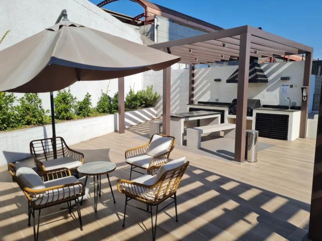 Seguridad 24/7 con acceso controlado, quinchos para eventos, sala multiuso y bicicletero. Cuenta con estacionamiento de visitas.