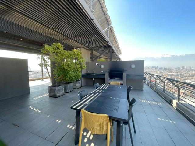 ProCasa 65828 vende hermoso departamento de 2 dormitorios, 1 baño, terraza exclusiva de 15 mt2, estacionamiento y bodega. Con balcón, orientación sur. Ubicado en zona centro de Santiago, con muy buena conectividad en locomoción y automóvil. Lindo edificio de 24 pisos. Gastos comunes de $65.000 aprox.