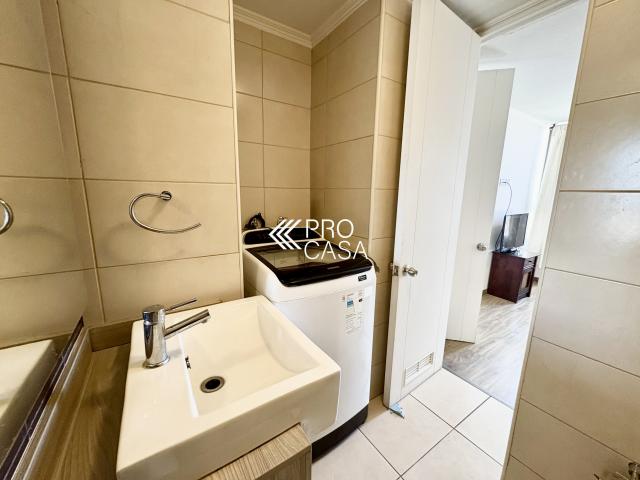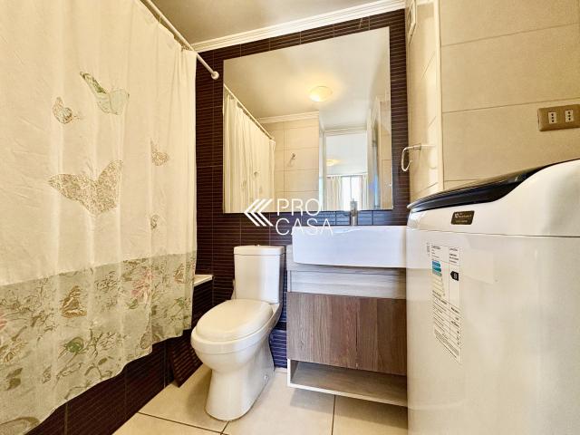 Cuenta con cocina integrada, equipada con campana y horno, conexión para lavadora, y una vista totalmente despejada con orientación sur, lo que brinda buena luminosidad y ventilación. Incluye bodega y gastos comunes de aproximadamente $45.000.