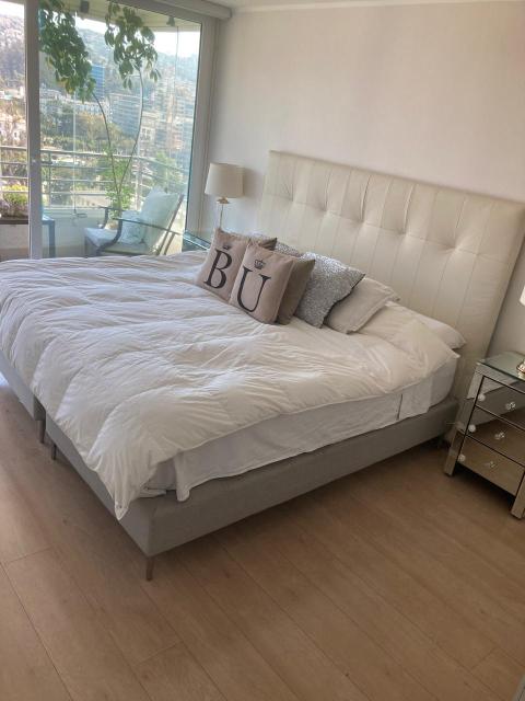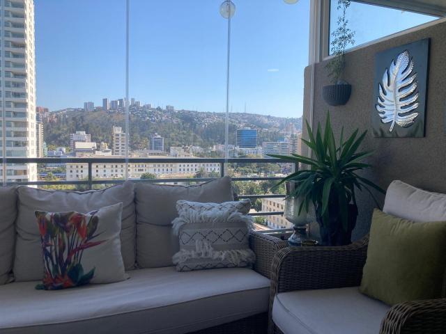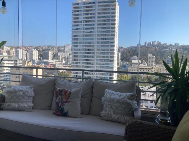 EXCELENTE OPORTUNIDAD DE COMPRA! departamento moderno y full equipado en pleno centro de Viña del Mar con estupenda vista que se ve el mar, buenos espacios y dormitorios, sala de estar, pisos madera flotante, ventanas termopanel, calefacción por estufas eléctricas movibles. Espacioso living y comedor con salida a terraza, cocina amplia full equipada con mueble isla, loggia, 3 dormitorios, 2 baños, home office o pequño estar. Los 3 dormitorios con salida a otra terraza, dormitorio principal en suite con baño con ventana, walking closet. EDIFICIO con quincho, piscina, salón de eventos, gimnasio. Código interno Procasa: 68914