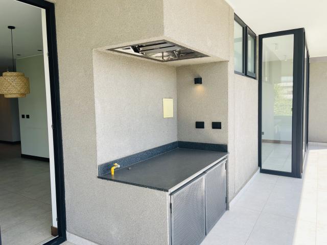 EXCELENTE DEPARTAMENTO NUEVO!! Ubicado en el mejor barrio de Vitacura, Jardín del Este, con una conectividad hacia autopistas, servicios y barrio tranquilo, edificio moderno e inteligente con sistema de control de acceso, estacionamientos de visitas, jardines y piscina, gimnasio, Club House full equipado. DEPARTAMENTO con excelente distribución, amplios recibos con cocina nueva integrada, excelente terminaciones, termopaneles, terrazas bordeando el departamento con excelente vista al oriente, dormitorio principal en suite con sala de vestir, amplio dormitorio y baño completo con ventana. Dos dormitorios y una salita de estar, baño completo, baño de visitas. 2 ESTACIONAMIENTOS y 1 BODEGA, bajos gastos comunes $ 300.000.- VISITELO!! Código interno Procasa: 68444