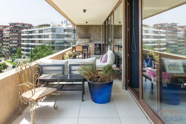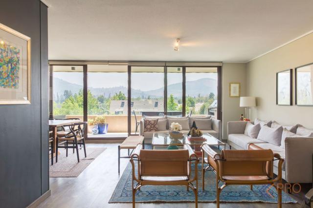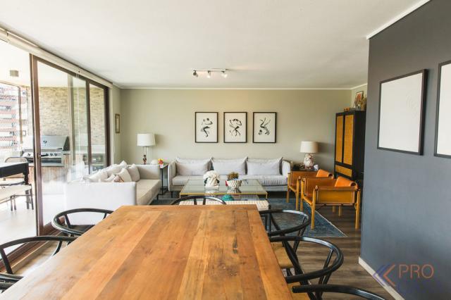 Exclusivo departamento casi nuevo en una de las mejores ubicaciones de Vitacura, a pasos del Club Sport Francés. Destaca por sus terminaciones de alto nivel, amplios espacios y una excelente distribución. Cuenta con tres dormitorios y tres baños; el dormitorio principal, además de ser en suite, ofrece salida directa a la terraza y un gran walk-in closet. El living-comedor es luminoso y se integra con una amplia terraza que incluye quincho, ideal para disfrutar en familia. La cocina incorpora cubiertas de cuarzo, diseño moderno y una práctica logia, mientras que todo el departamento cuenta con ventanas termopanel y aire acondicionado para mayor confort.