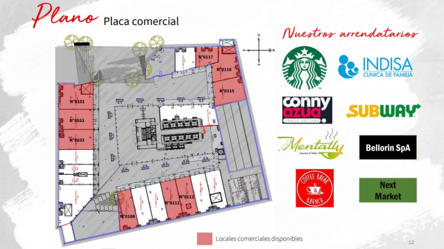 DESCRIPCIÓN: El Local Comercial 109 y 110 tiene 166 m2 y su canon de arriendo es de UF 0,65 el m2.