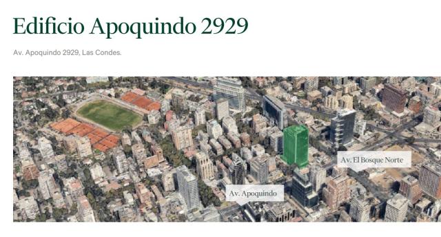 ProCasa La Dehesa (Oficina Carloshurtado Propiedades) ARRIENDA Imponente OFICINA en un piso 21 del Edificio Apoquindo, en el centro mismo del prestigioso Barrio El Golf de la Comuna de Las Condes, con entrada por Avenida Apoquindo a pasos de la Avenida El Bosque.