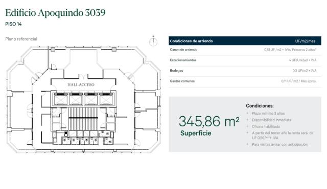 • Renta: UF 0.49/m2 + IVA
