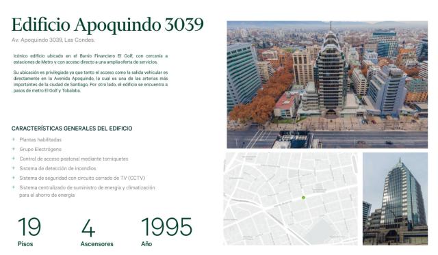 ProCasa La Dehesa (Oficina Carloshurtado Propiedades) ARRIENDA Espectacular OFICINA en Avenida Apoquindo en pleno Barrio El Golf de la Comuna de Las Condesa. A pasos de Estación de METRP El Golf, con Bancos, Hoteles, Restoranes y servicios a distancia caminable. Gran conectividad vial con autopistas urbanas. Variado transporte público a la puerta.
